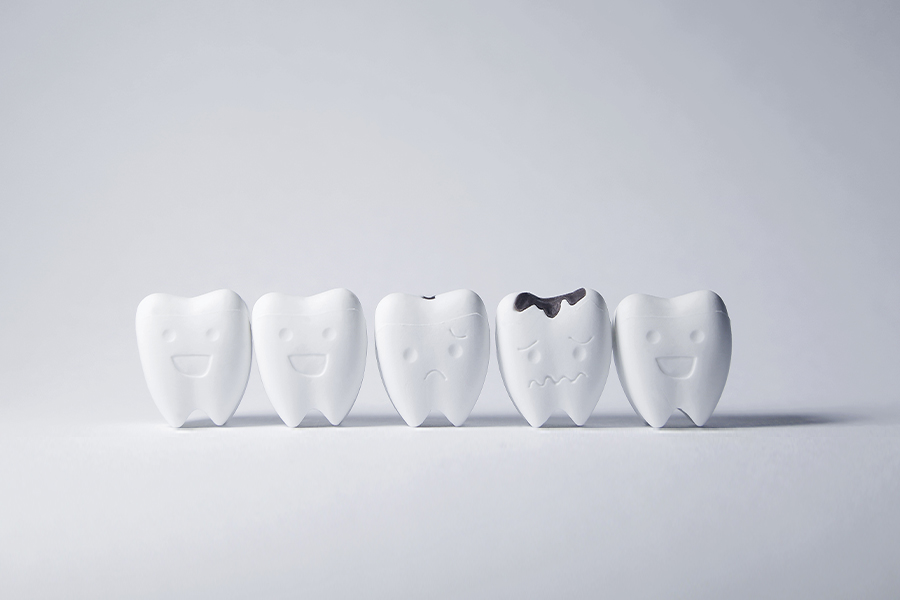 虫歯病原菌(ミュータンス菌など)が口の中の糖を利用して「酸」を作ります。その酸によって歯の表面が溶かされていく病気です。